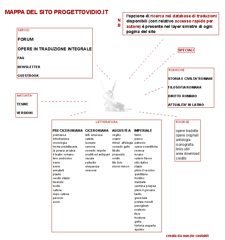 sezione speciali: approfondimenti sulla letteratura latina autori dell'età pre-ciceroniana autori dell'etą ciceroniana autori dell'etą augustea autori dell'etą imperiale torna alla homepage di progettovidio.it tesine e percorsi per la maturitą tutte le versioni assegnate alla maturitą classica dal 1947 ad oggi storia e civiltą romane la filosofia romana e i suoi autori diritto romano: profilo storico e risorse attualitą in latino dal 2003 sinossi delle risorse presenti sul sito forum per consulenze tutte le opere latine in traduzione italiana integrale presenti sul web la sezione delle domande pił frequenti per consulenze di tipo tecnico relative alla navigabilitą, alla funzionalitą del sito ed ai suoi contenuti per essere sempre informato/a sulle novitą relative al sito il tuo feedback al sito contatto